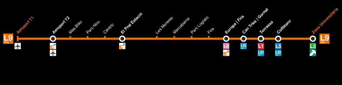 - Can Zam i la L9 sud amb el recorregut Aeroport T1 -