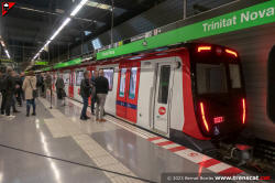 Primer dia de la unitat sèrie 7000, amb el tren entrant a Trinitat Nova