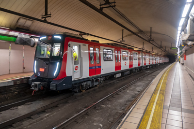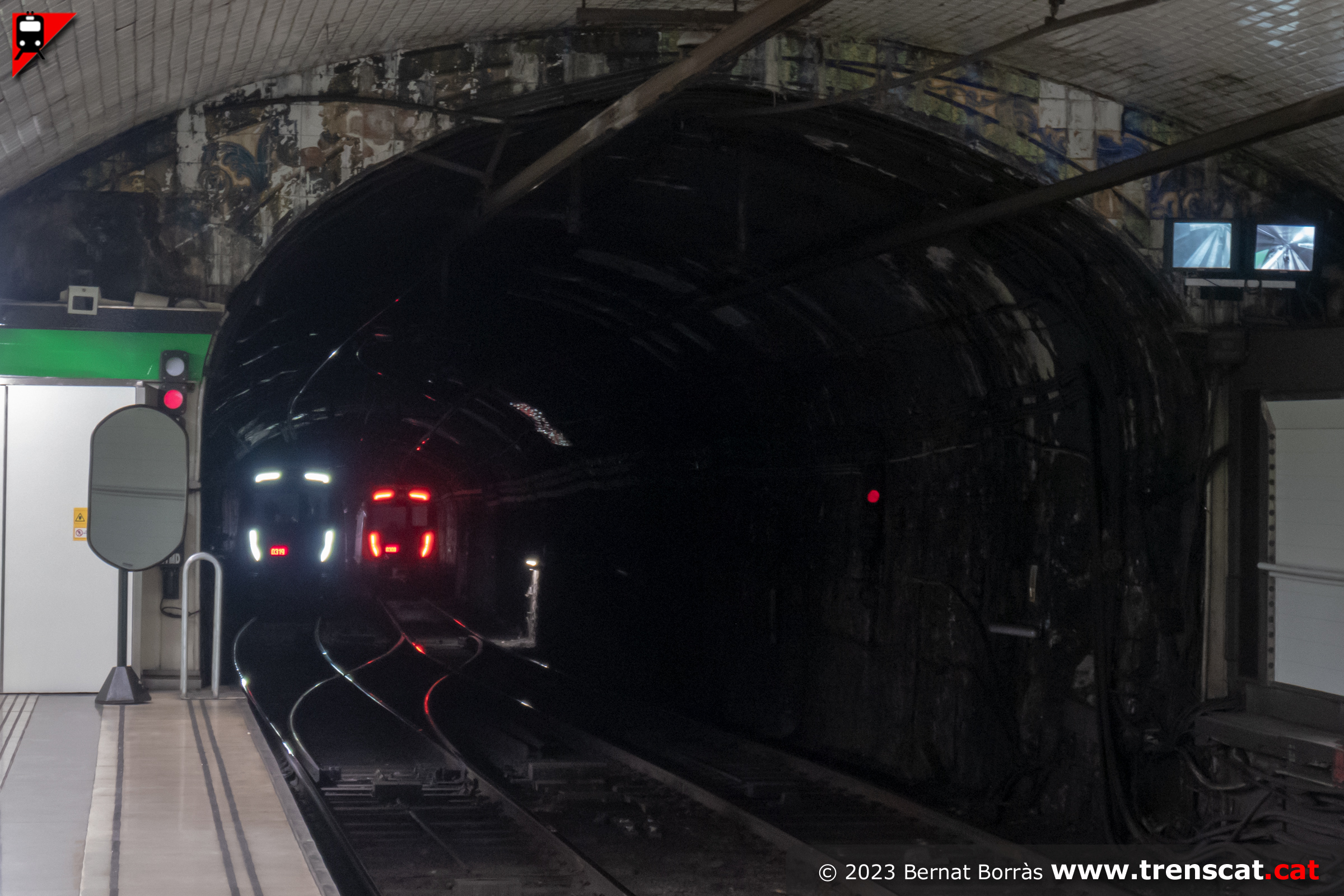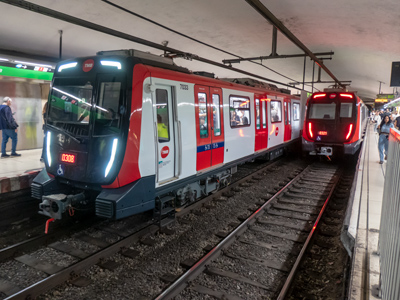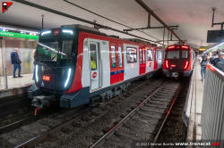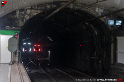 Encreuament de trens de la sèrie 7000 al túnel entre Lesseps i