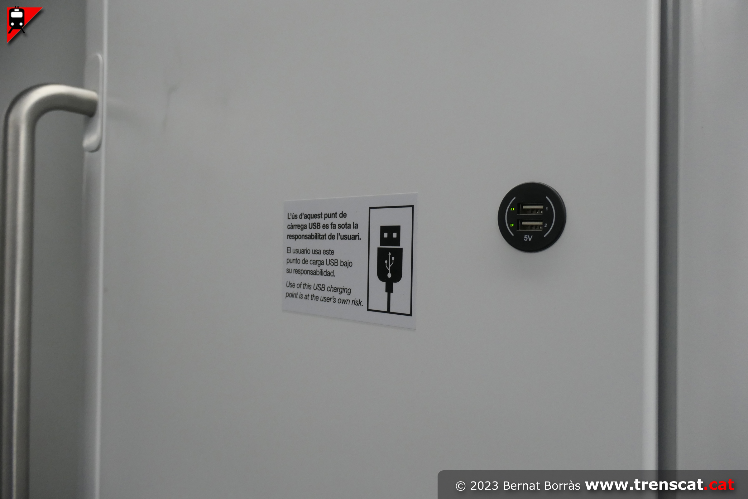 Detall d'una de les portes del nou tren a punt per estrenar (març