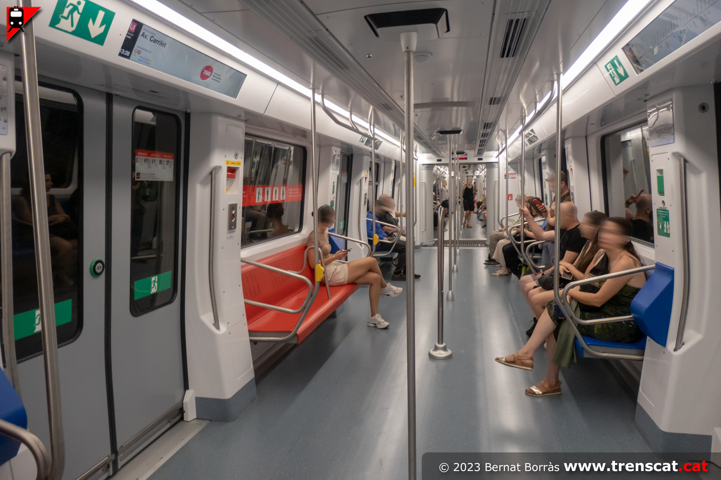 Interior d'un dels cotxes sèrie 8000 del FMB (juliol 2023) |